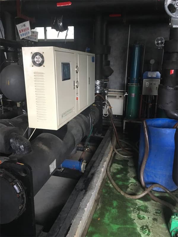 当机组的冷凝压力也就高压表在19公斤以上时,我们要及时对冷凝器进行清洗,前面小编已经具体给大家介绍了两种冷凝清洗的办法,化学清洗和物理清洗。 水冷式冷水机组的蒸发器常见的为壳管式,也有的厂家采用板换式和盘管式等多种样式的。壳管式分为满液式和干式蒸发器,满液式蒸发器的蒸发温度一般比蒸发出水温度低2-3℃,干式蒸发器的蒸发温度一般比蒸发器出水温度低5℃,如果这个温差变大,那么我们怀疑可能是蒸发脏堵,影响换热效率。